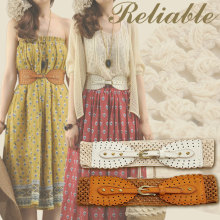vivicasa女士新款腰带复古百搭森女文艺松紧镂空勾花女士宽腰封女