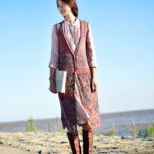 零羽/女春季新款 V领套头中长针织马夹 韩版宽松显瘦毛衣马甲背心