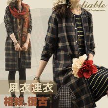 零羽/春季新款女 学院复古开衫外套长袖格子中长款连衣裙风衣外套