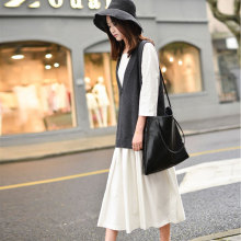 零羽/拼接百褶长袖加厚打底裙 女秋宽松显瘦中长款长袖纯色连衣裙