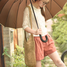 零羽/春季女松紧高腰休闲宽松显瘦大码棉麻阔腿裤热裤 西装短裤女
