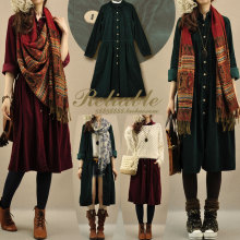 零羽/淡漠/文艺森女风衬衫翻领长裙 女宽松百搭灯芯绒长袖连衣裙