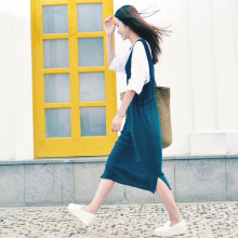 零羽/春季新款女棉麻背带裙 文艺复古纯色百搭宽松背心长裙连衣裙