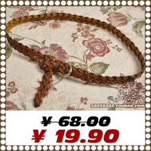 2017女款新款腰饰皮带 原创文艺复古百搭麻花编织铆钉皮花腰带女