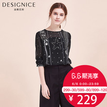迪赛尼斯2017春装新款雪纺衫女长袖圆领套头网纱打底衫宽松欧洲站