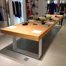 美式乡村白色铁艺实木餐桌饭桌办公桌会议桌展示台长方形展示桌子