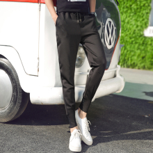 伊衫奇恋男裤运动裤拉长腿形个性束口裤男休闲裤男黑色裤子男韩版