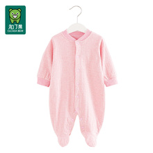 知了熊 婴儿薄棉内衣 宝宝纯棉上衣 新生儿纯棉肩开扣居家服 春秋