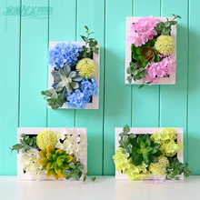 现代立体仿真花假花卉植物多肉实木相框背景墙面上装饰品墙壁挂饰