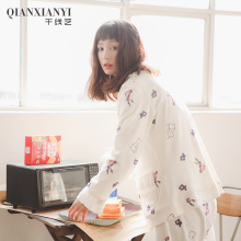 芬腾千线艺2017新款睡衣女春秋季卡通纯棉长袖开衫全棉套装家居服