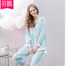 芬腾2017春秋新款睡衣女冬季韩版纯棉长袖开衫全棉休闲家居服套装