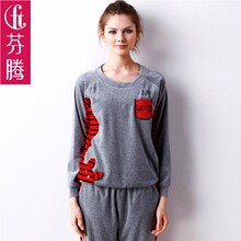 芬腾长袖2014春季华贵女人天鹅绒休闲家居服睡衣套装优雅套装包邮