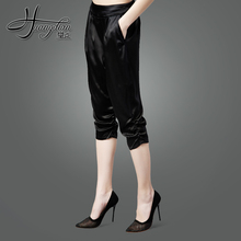 韩版重磅真丝裤子女夏季桑蚕丝哈伦裤大码高腰七分裤休闲小脚裤潮