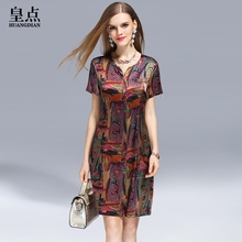 中年真丝香云纱连衣裙女夏2017新款大码女装中长款宽松桑蚕丝裙子