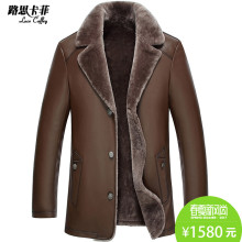 2016新款男装皮草真皮皮衣男士中长款皮毛一体海宁绵羊皮皮衣外套