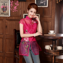 晨恋旗袍新款 夏装复古短款改良时尚中式旗袍上衣短袖欧根纱 两色