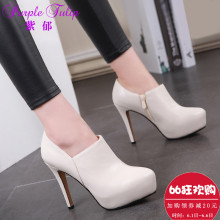 紫郁2017春季女鞋时尚尖头高跟鞋深口单鞋女防水台短靴细跟裸靴