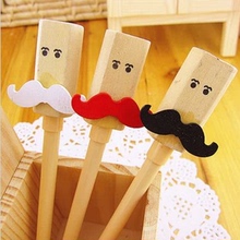 韩国款文具 可爱卡通大胡子先生针管型签字笔 木质中性笔