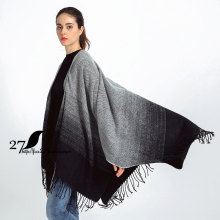 欧美秋冬时尚百搭黑灰渐变色超大开叉披肩复古流苏围巾空调保暖