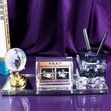 水晶笔筒三件套水晶办公用品地球仪商务礼品开业礼品可刻字印LOGO