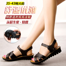 夏季软底妈妈凉鞋真皮大码老人鞋平底防滑中老年沙滩鞋女鞋40-43