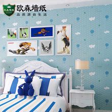 卡通环保儿童房无纺布墙纸男孩女孩卧室草莓气球背景温馨蓝色壁纸
