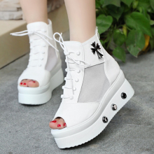 学生凉鞋女2017夏新款网纱鱼嘴高跟鞋松糕跟厚底罗马凉靴平底女鞋
