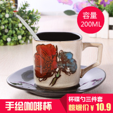义旺 方形咖啡杯欧式杯碟勺套装简约釉下彩陶瓷200ml美式拉花杯