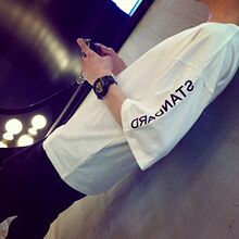 日系夏季新款中袖青年半袖男士韩版修身7七分袖T恤血短袖潮上衣服