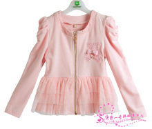 2017新款女童小熊蕾丝西装外套 时尚儿童春秋装粉红拉链外套 1161