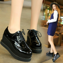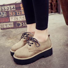 2017春秋新款英伦厚底松糕鞋女复古系带单鞋圆头平底学院风女鞋子