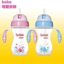bobo母爱参数水杯儿童吸管杯带手柄婴儿水杯防漏宝宝学饮杯260ml