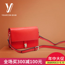 意尔康女包新款青年金属链条女斜挎包时尚休闲红色女单肩小方包