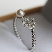 【浅小屋】4~4.5mm正圆雪花天然淡水珍珠925纯银戒指麻花关节指女