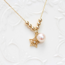 【浅小屋】18K金钻石镂空简笔画星星月亮皇冠天然珍珠吊坠9K项链