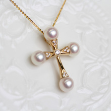 【浅小屋】基督十字架耶稣14K金锆石6~6.5mm极强光淡水珍珠吊坠