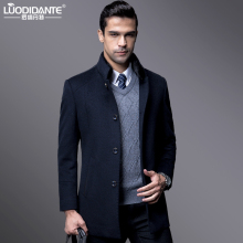 罗缔丹特加长毛呢大衣男装外套秋冬男子商务中年翻领宽松羊毛呢子