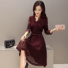 蕾丝连衣裙春装2017新款女时尚韩版镂空中长款修身显瘦打底衫大码