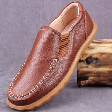 日常春秋季男士商务休闲皮鞋真皮软面皮套脚圆头层牛皮厚底男鞋