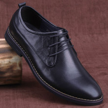 日常百搭商务休闲头层牛皮鞋男真皮软面皮圆头大码系带春秋季男鞋