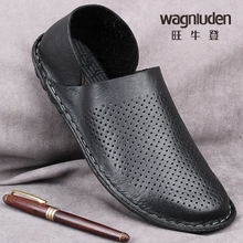 牛皮新款凉鞋男洞洞商务休闲皮鞋镂空真皮透气夏季单层软面皮男鞋