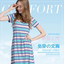 女带胸垫免文胸条纹圆点半袖短袖中长裙罩杯一体可外穿家居服