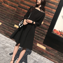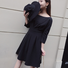 春秋款2017新款女装中长款高腰一字领气质经典赫本修身显瘦连衣裙
