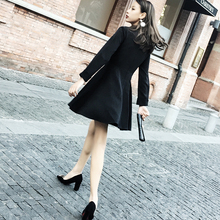 包邮2017新款春秋女装韩版修身收腰双排扣撞色显瘦a型黑色连衣裙