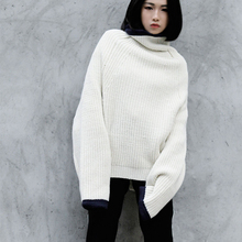2016秋冬新款韩版宽松潮牌撞色宽大袖型廓形高领加厚毛衣外套女