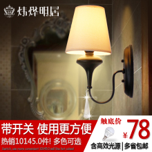 壁灯美式 卧室床头客厅过道带开关复古铁艺创意北欧现代简约灯具