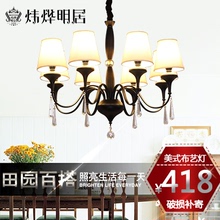 美式吊灯 客厅餐厅卧室吊灯具 现代简约乡村水晶吊灯饰 铁艺吊灯