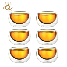玻璃品茗六个装花茶杯小茶杯 功夫茶杯 防烫耐热双层玻璃小杯子