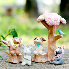 神仙爺爺 zakka致念童真 超萌粉色樱花树树脂小动物摆件 创意礼物