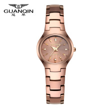 正品冠琴手表钨钢女士手表玫瑰金女表防水钻石英手表女全国联保